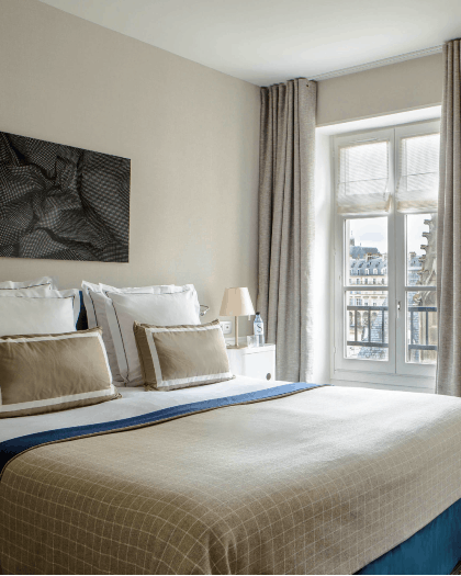 Located near the Seine River, overlooking both the Church of Saint-Germain l’Auxerrois and the colonnade of the Louvre Museum, the Hôtel de la Place du Louvre is an oasis of calm in the heart of a bustling city. Combining modern comfort with historical charm, it’s a perfect stay for art lovers.