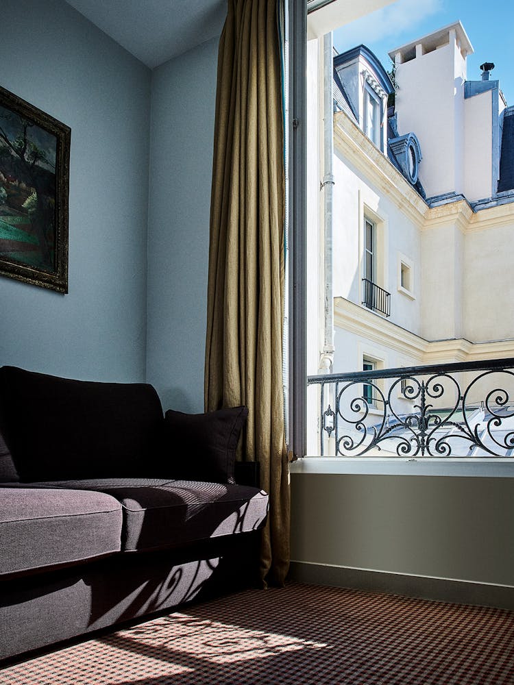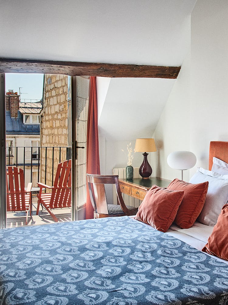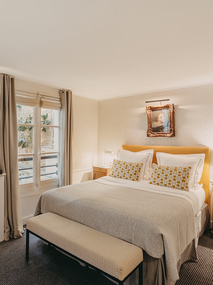 A peaceful, artistic retreat in a four-star room on the Rive Gauche.