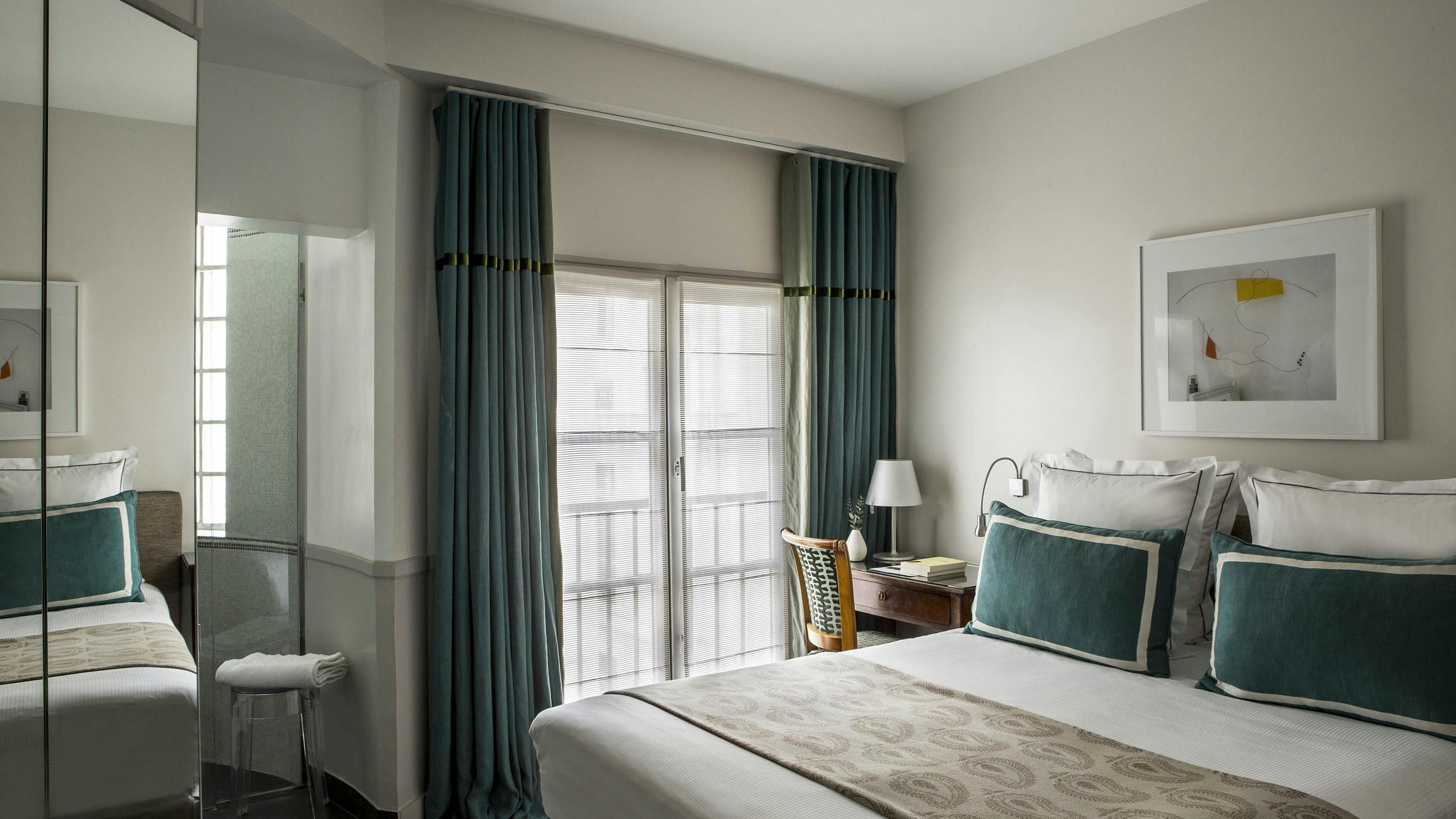 The Cortyard Cosy Room offer an intimate 161 ft. sq. space to relax in, as well as a view of the inner courtyard. The walls are adorned with fabrics from the best designers or with unique photographs, and you find yourself succumbing to French art de vivre. In the bathrooms with their walk-in showers open to the bathroom, you’ll discover welcome products from the prestigious CODAGE brand, to pamper your skin with the utmost delicacy.