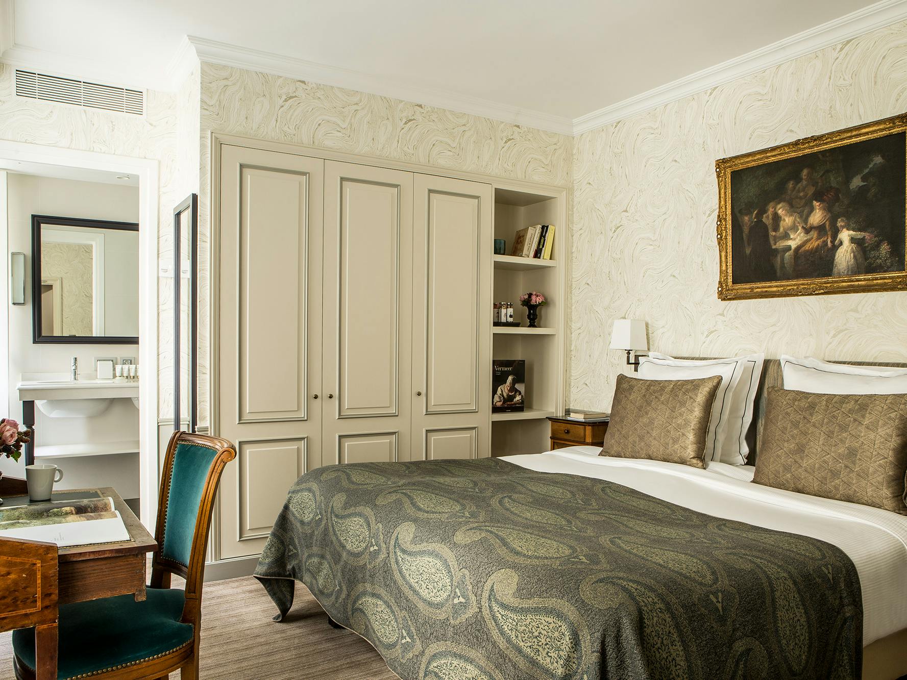 You’ll be staying in one of our Superior Rooms, a 237-280-ft.-sq; space where Parisian elegance meets modern comforts, complete with views of the garden.For your comfort, some of them offer the choice of a double bed or two twin beds, upon request and subject to availability. Meanwhile, the en-suite bathroom is stocked with CODAGE skincare products and soft bathrobes, as well as a bath or a shower for relaxing after a day spent strolling around the city. The room is also equipped with a flat-screen satellite TV for unwinding, air conditioning for extra comfort, and free, unlimited Wi-Fi access.