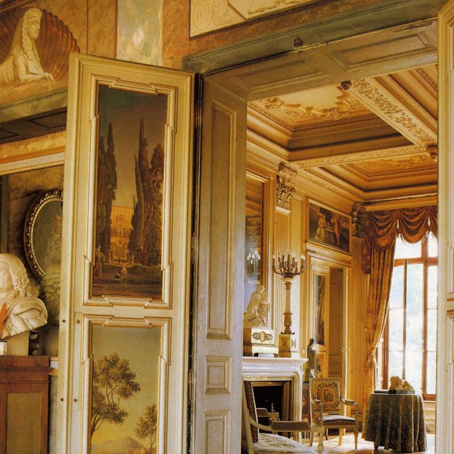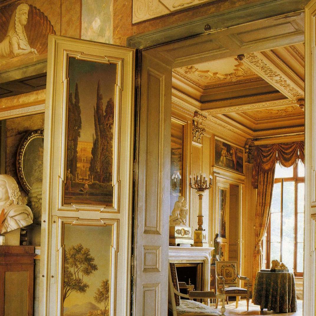 The château’s salons, which are also listed, effortlessly redefine our concept of elegance. From ceilings and woodwork adorned with sumptuous frescoes to trompe-l’oeil depictions of Roman mythology, everything tells the story of an artistic odyssey.
