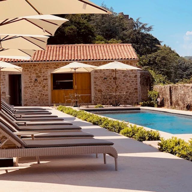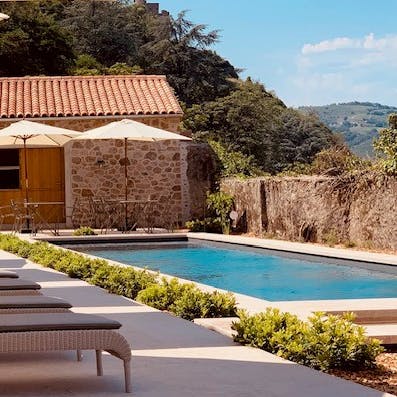 Dès la porte d'entrée, classée Monument Historique depuis 1927, vous voici plongé dans un hôtel particulier du XVIIIe siècle, où l'atmosphère d'époque côtoie des jardins en terrasse et une piscine avec une vue imprenable sur la Chapelle de l'Hermitage et ses prestigieux vignobles, le château de Tournon-sur-Rhône et le Vercors. Préparez-vous à déambuler dans un lieu pas comme les autres, où l'Histoire effleure l'âme à chaque coin. Ici, le parquet craque sous vos pas dans les salons de réception ou la salle à manger, les trumeaux se pavanent au-dessus des portes, le décor contemporain du bar met en exergue la voûte creusée dans un rocher où de l'eau de source ruisselle.