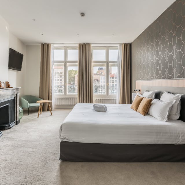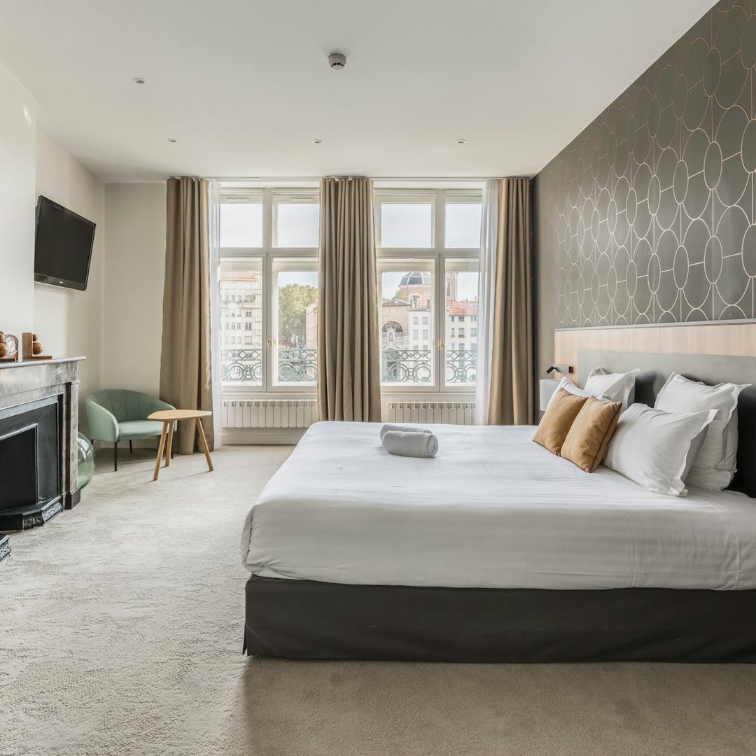Sous les plafonds à la française ou derrière les grandes fenêtres donnant sur la Saône, les chambres du Phénix ont ce je-ne-sais-quoi qui fait qu’on s’y sent bien. Du voyageur solo à la tribu de quatre, chaque espace a été pensé pour conjuguer charme d’époque et confort d’aujourd’hui.