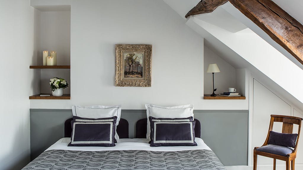 Accessible depuis le 5ème étage par un charmant escalier, notre Junior Suite est votre nouveau chez-vous, un véritable pied-à-terre parisien que l'on retrouve avec plaisir et émotion.