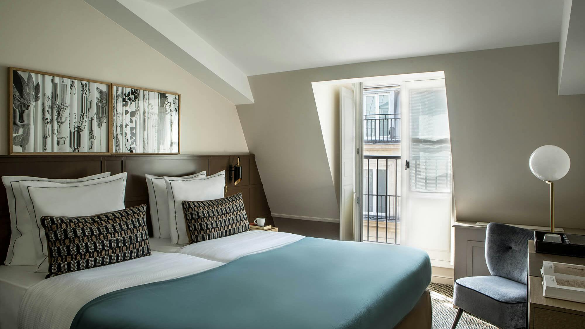 D'une superficie d'environ 18 m², nos Chambres Supérieures offrent une vue sur la pittoresque rue d'Alger et le magnifique Jardin des Tuileries, invitant l'âme de Paris à pénétrer dans votre cocon.