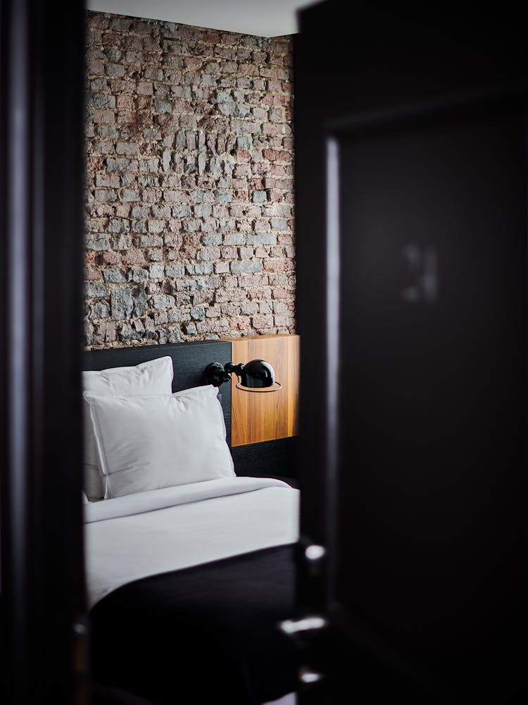 52 chambres, hommage au bassin minier de Lens : l'éloge de la dualité, de l'ombre à la lumière, du noir au blanc, du passé au présent. L'Hôtel Louvre-Lens représente l’équilibre entre ses origines de maisons ouvrières, avec des matières brutes et des teintes charbonneuses, et le confort moderne. La taille des chambres, à partir de 14m2, est liée au désir de conserver la surface de celles des mineurs à l'origine. Un contraste élégant qui préserve l’authenticité des lieux tout en offrant lumière et sérénité.