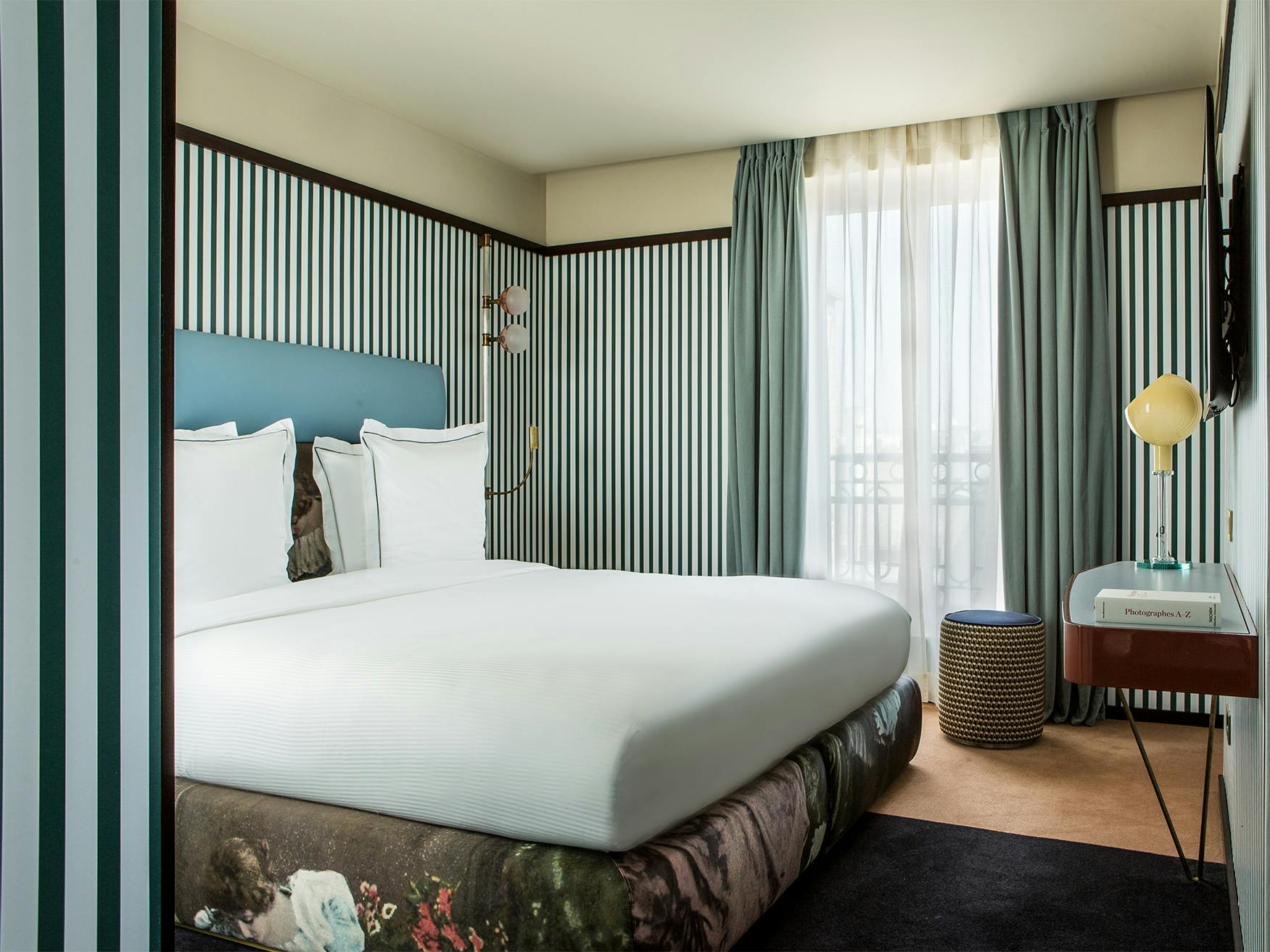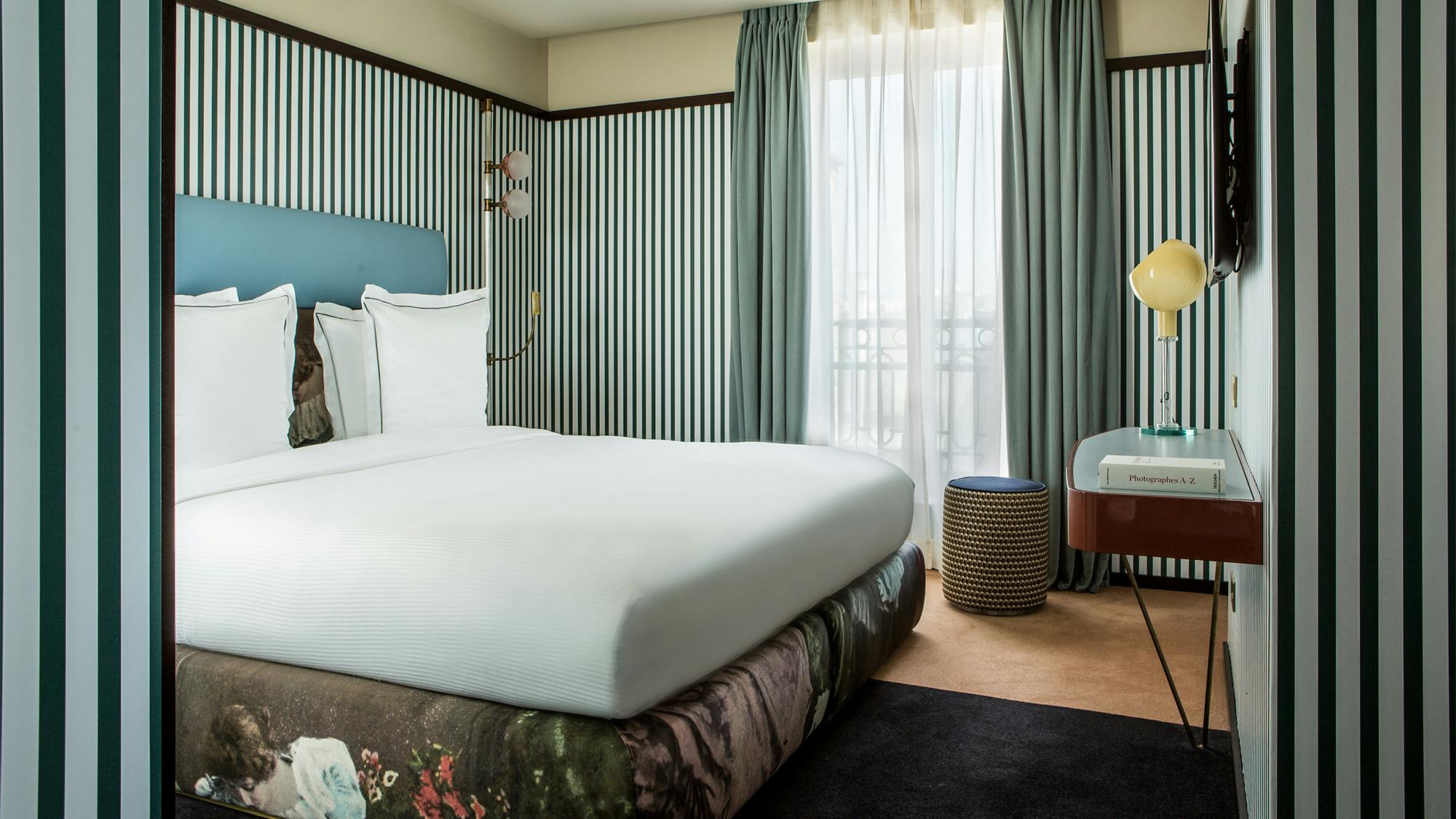 Conçues sur mesure par le studio de design milanais Dimore Studio pour l'Hôtel du Rond-Point des Champs-Élysées, nos Chambres Supérieures sont un hommage à l'époque Art Déco. L'audacieux mélange de couleurs, la symétrie parfaite des imprimés, et les réminiscences du style rétro créent une perspective singulière qui charme les amateurs d'art et d'élégance.