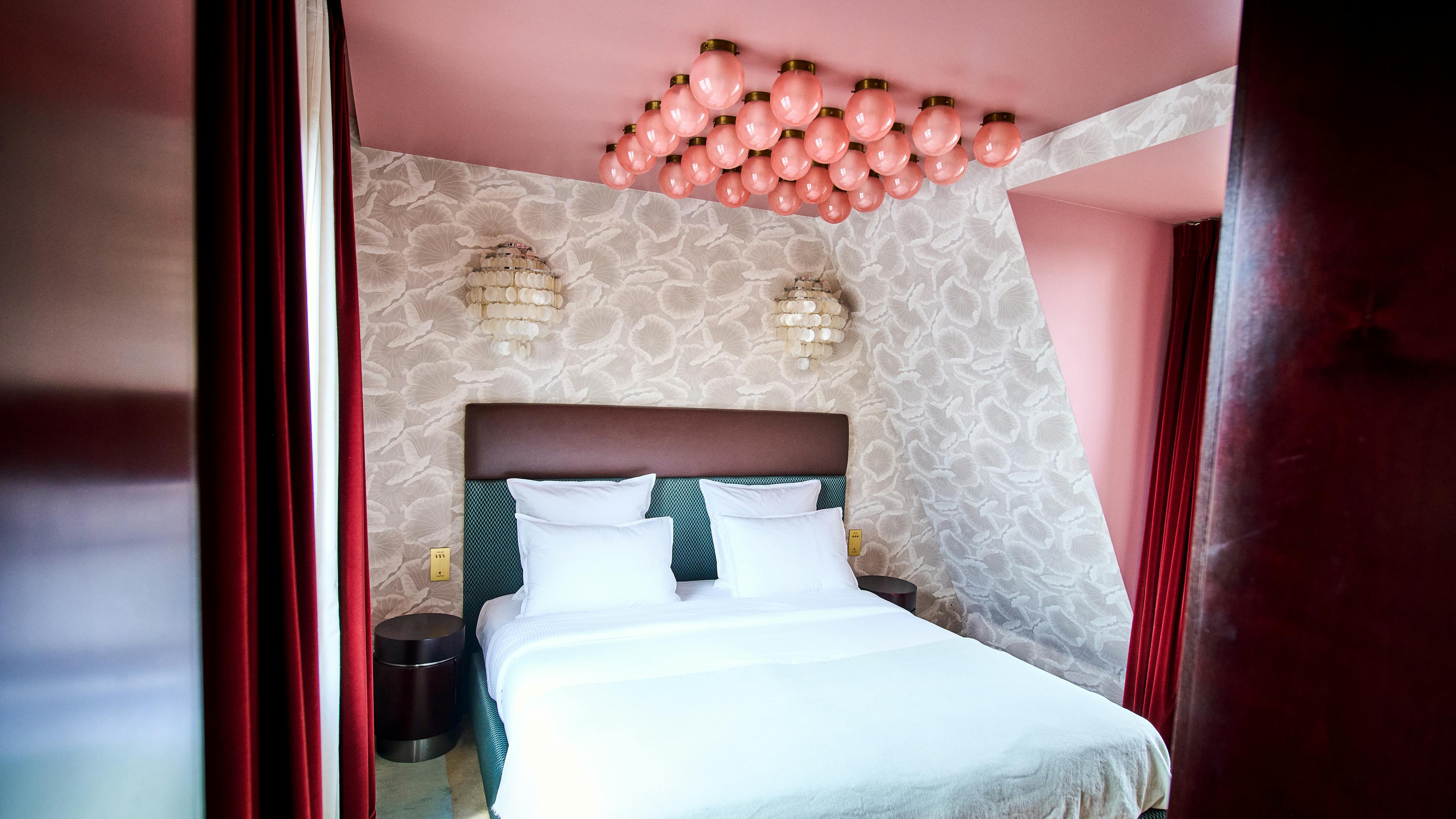 La Suite Parisienne, règne en majesté sur l'intégralité du 8ème étage de l'hôtel, vous offrant un espace de 34m2 réparti en deux pièces indépendantes. Cette suite vous fait don d'une double exposition, révélant des panoramas exceptionnels sur la Tour Eiffel, le Sacré-Cœur et les toits de Paris. L'ensemble a été façonné par le studio de design milanais Dimore Studio, pour créer un véritable havre de luxe et de raffinement. C'est réussi, vous voyagez.