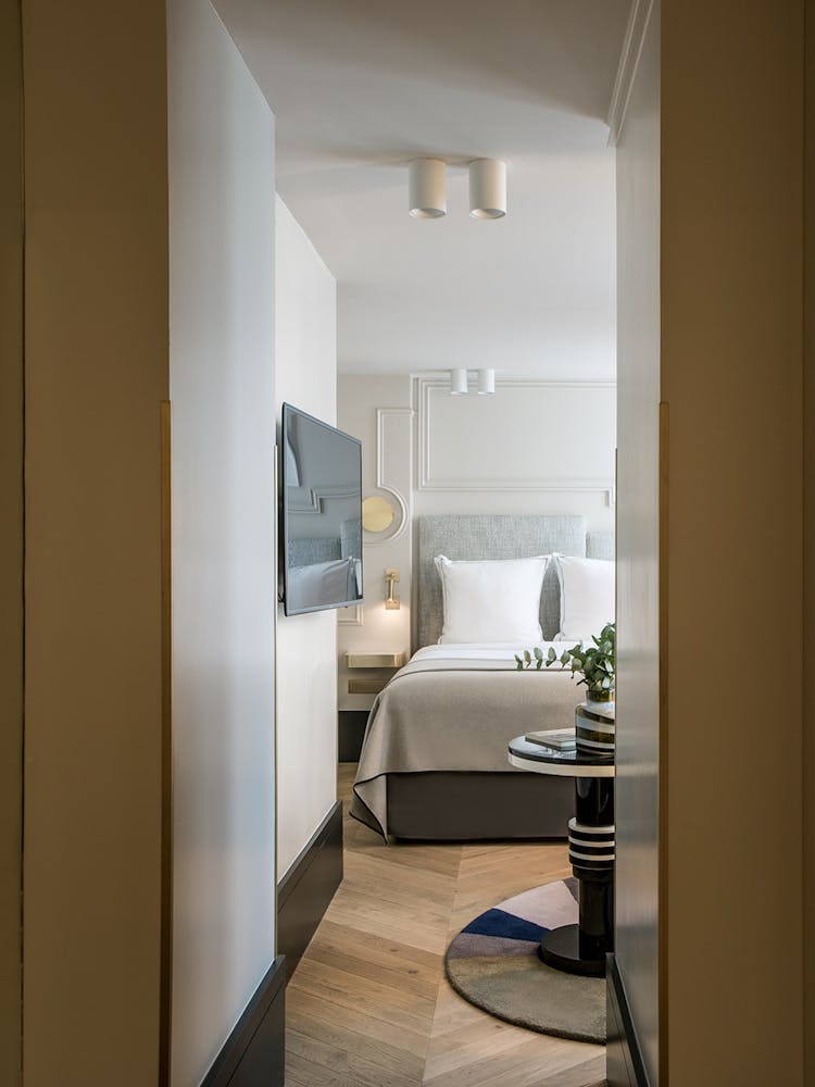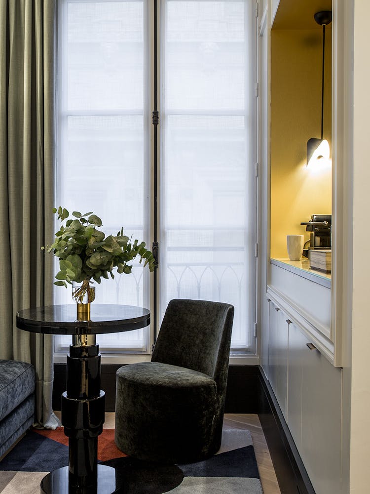 Maison Armance : une résidence d'élégance et d'histoire à Paris, Rue Cambon, avec 20 chambres sous le ciel parisien. Ici, chaque chambre a été pensée sous le spectre de l'intime, du confidentiel, du confort discret. Notre hôtel incarne l'essence même de l'appartement privé, un havre où l'on se sent chez soi dès le seuil franchi.