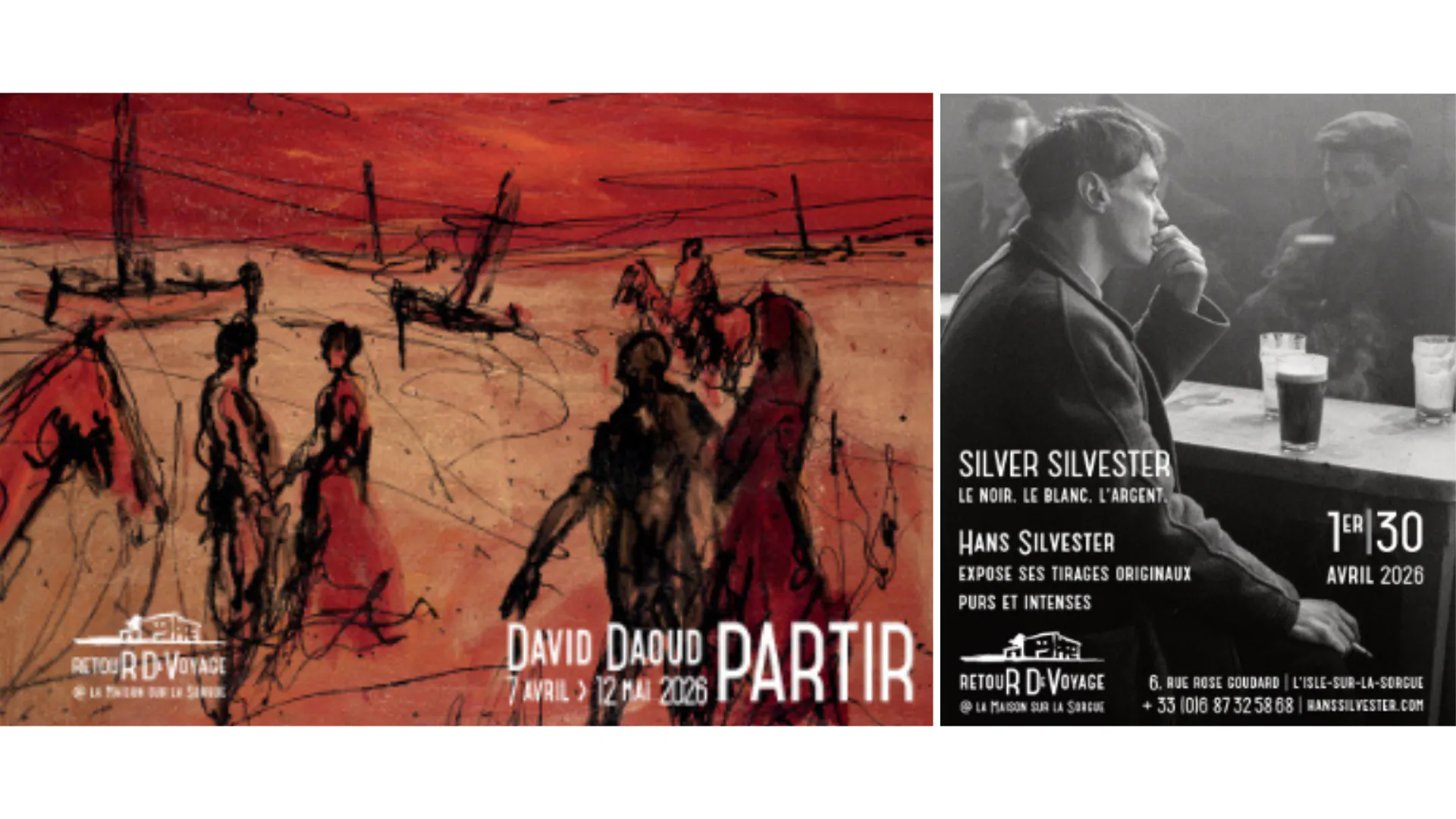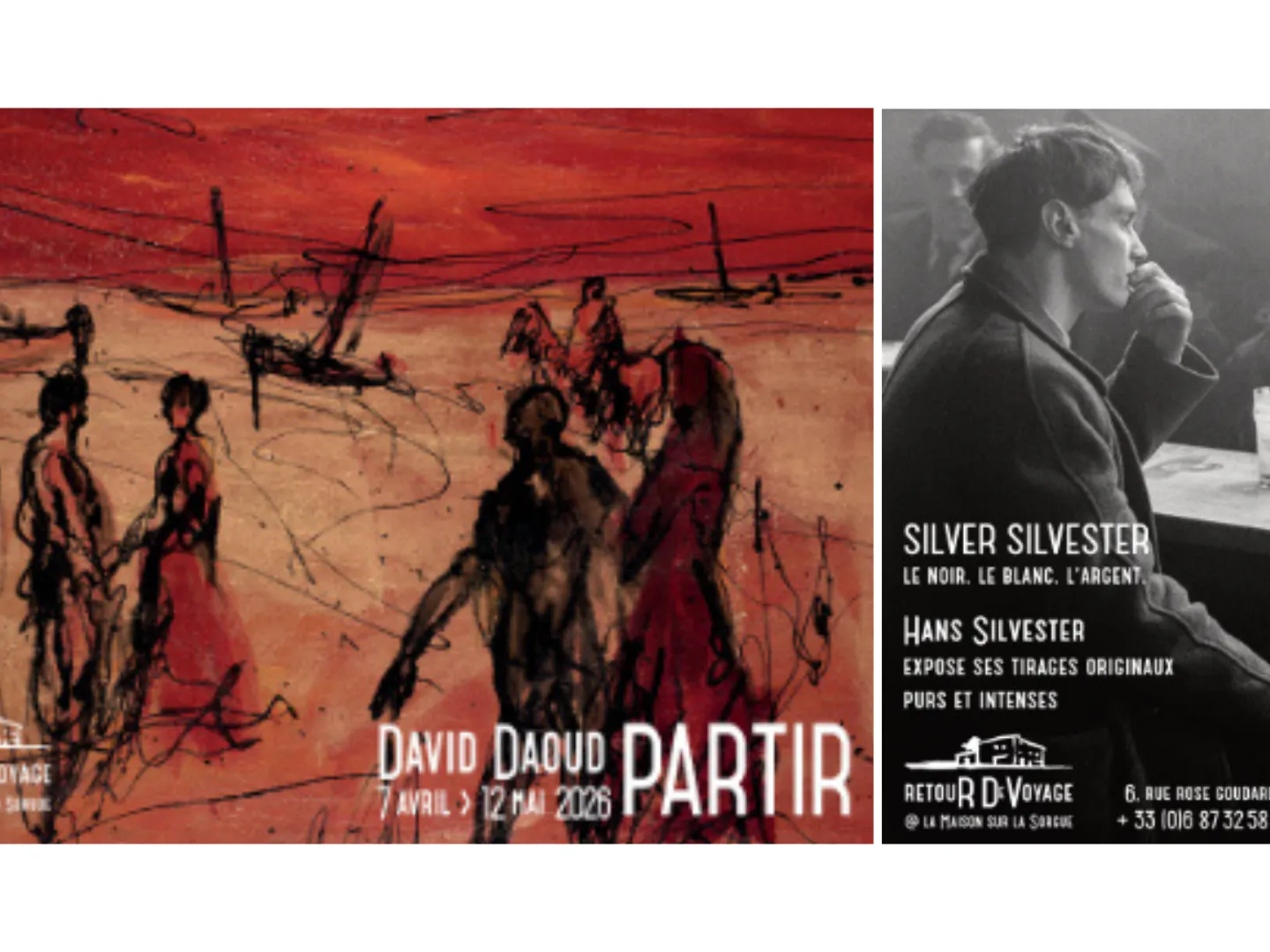 La Galerie Retour de Voyage, nichée au cœur du boutique hôtel La Maison sur la Sorgue - demeure d’Esprit de France - célèbre l’image et le mouvement en proposant deux expositions qui valent le détour : “Partir” et “Silver Sivlester”. Les visiteurs sont invités à vivre cette double immersion dans le cadre privilégié d’une maison d’artistes.