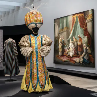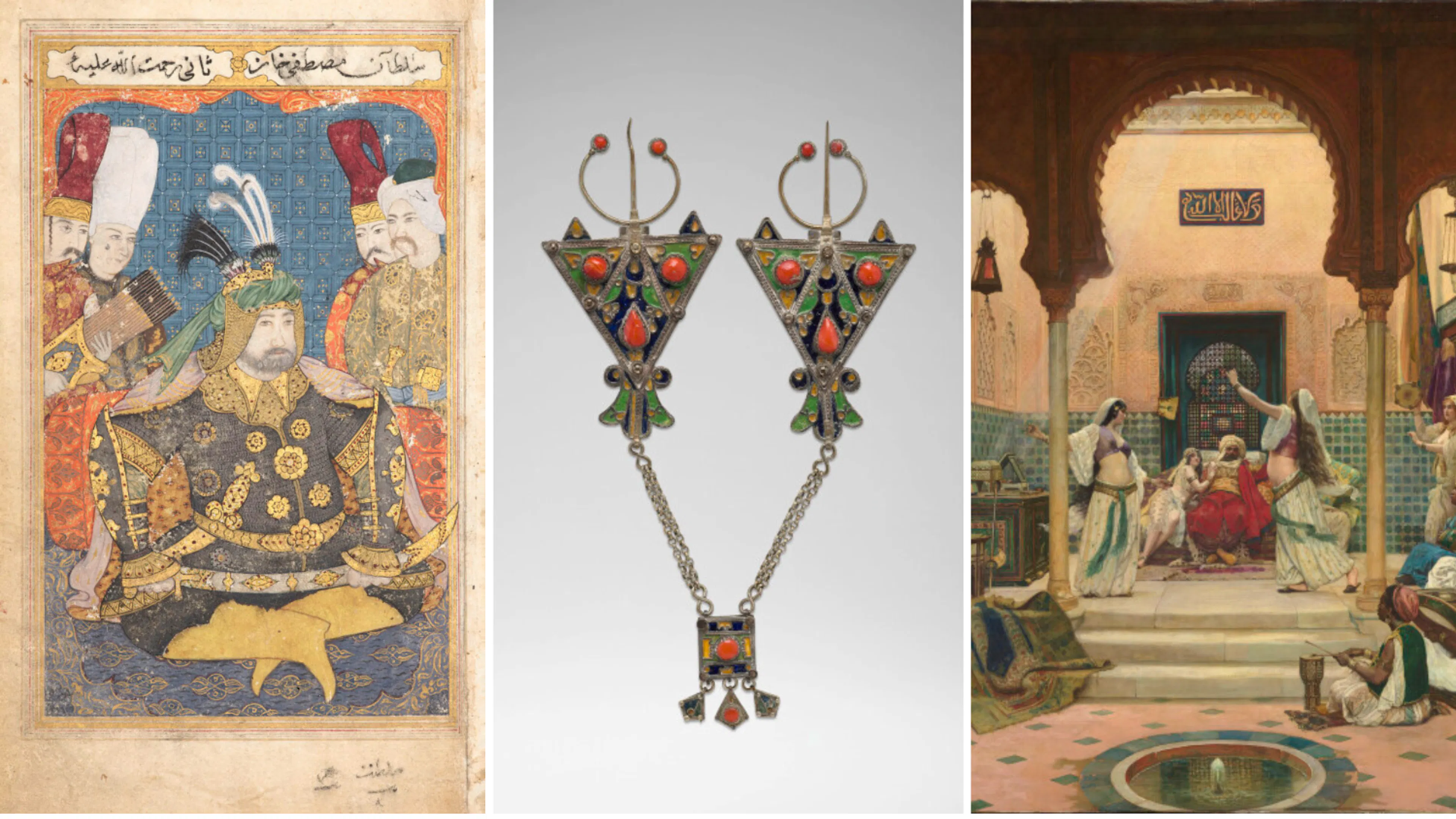 1- Portrait posthume de Mustafa II en armure, Levni, Abdülcelil Celebi, après 1703, Musée du Louvre, département des Arts de l'Islam © Musée du Louvre, Dist. GrandPalaisRmn - Raphaël Chipaul 2- Fibules et parure pectorale, milieu du 19e siècle, Musée du quai Branly – Jacques Chirac, ©musée du quai Branly - Jacques Chirac, Dist. GrandPalaisRmn - Pauline Guyon 3- Les Almées, Paul Bouchard, vers 1893, France, Paris, vers 1893, huile sur toile, H. 161 ; l. 133 cm, Paris, musée d'Orsay, RF 1977 93, don André Bouchard, 1961 © GrandPalaisRmn (musée d'Orsay) / Hervé Lewandowski